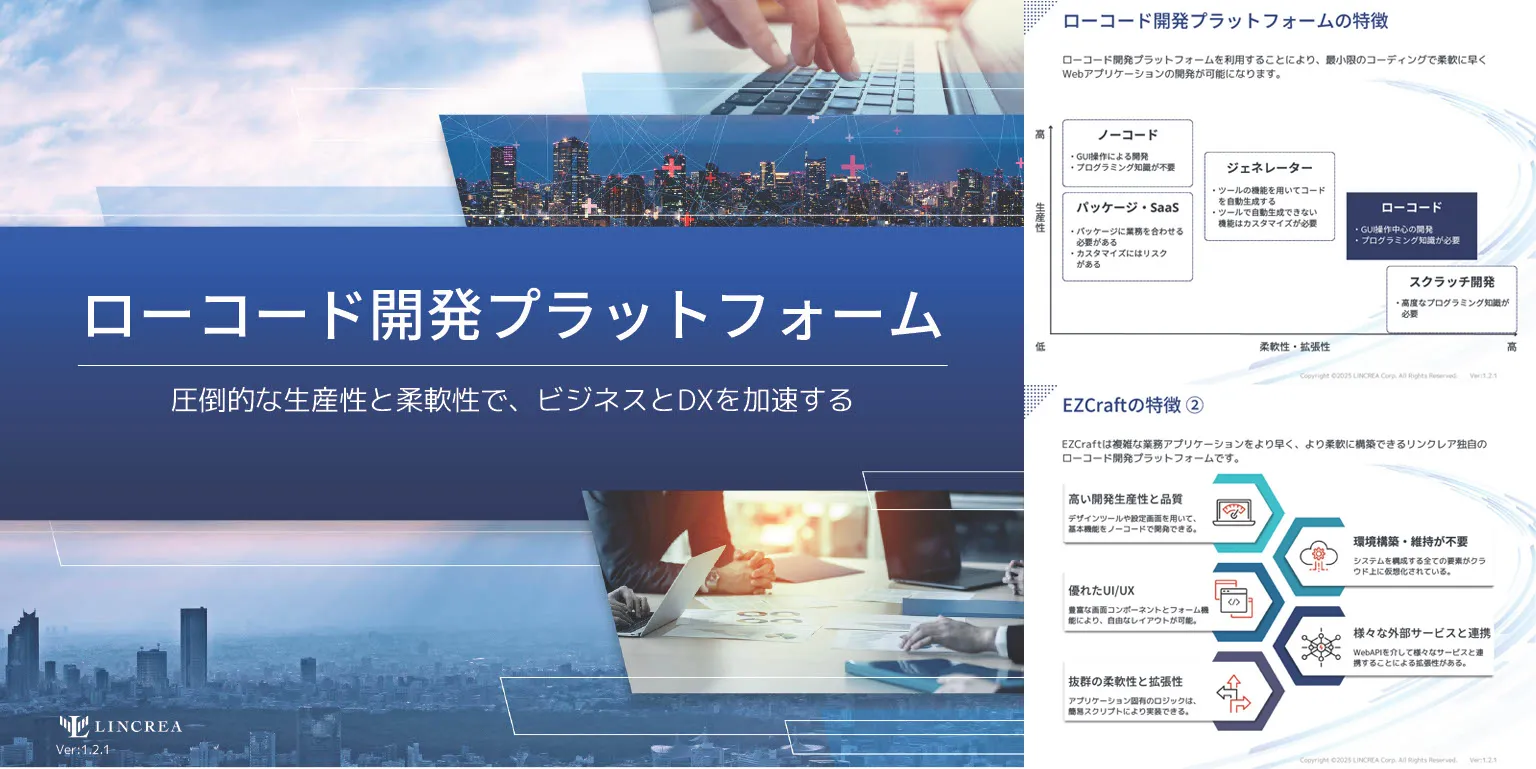 EZCraft(イージークラフト)は複雑な業務要件にも柔軟に対応できるローコード開発プラットフォームです。